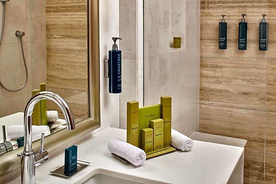 The spacious suite offers air conditioning, a mini-bar, a tea and coffee maker, a seating area and a flat-screen TV.